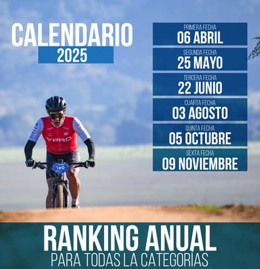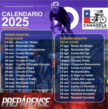 Calendario de eventos deportivos de ciclismo en Chile desde marzo 2025, con imágenes y detalles de cada evento.